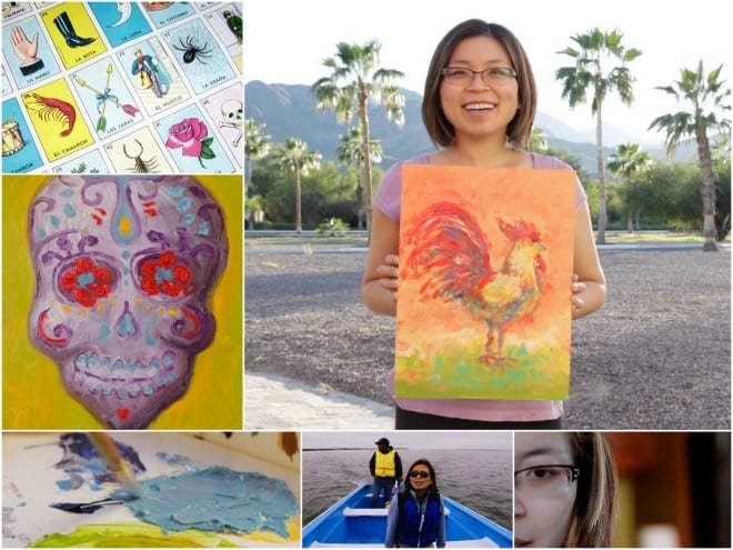 On my most recent visit to Baja, Mexico I found inspiration in the playful and visually striking cards from the iconic game of Lotería. So paint it I would! Or, at least … try.