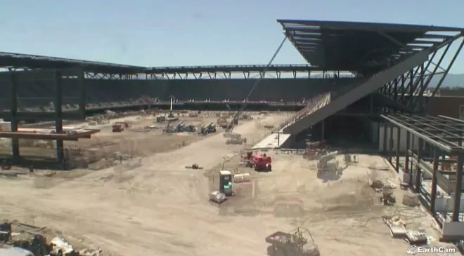 Earthcam has now released a time-lapse video showcasing the construction of the $100 million stadium. The 90-second video starts with a view of barren space, just soil, dirt and empty land, before showing the breaking of ground, materials being moved in, and the facility being built. At the tail end of the video you can even see the opening day festivities and the Earthquakes game in the background.