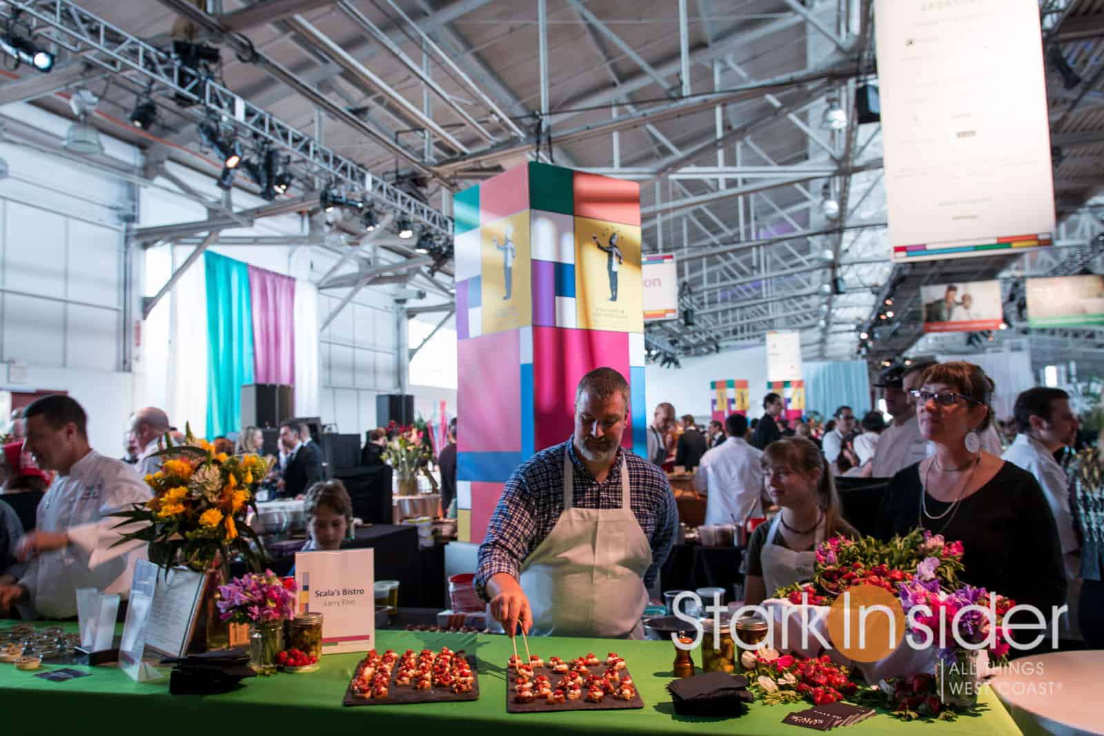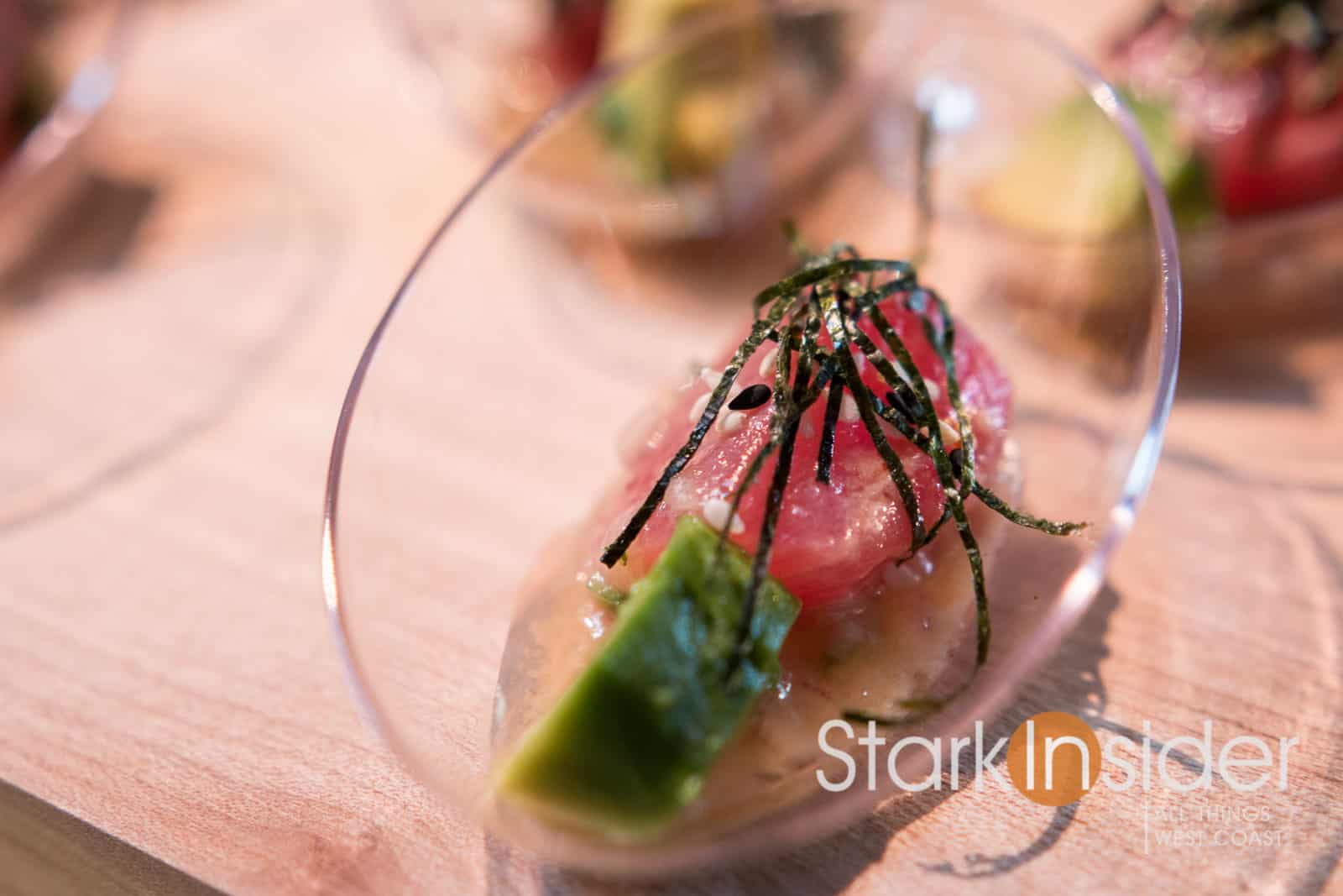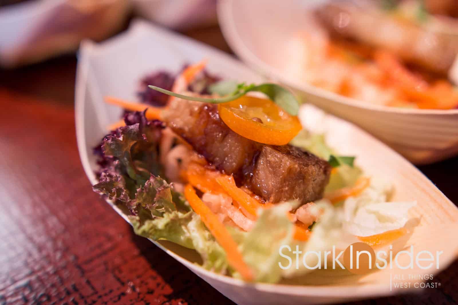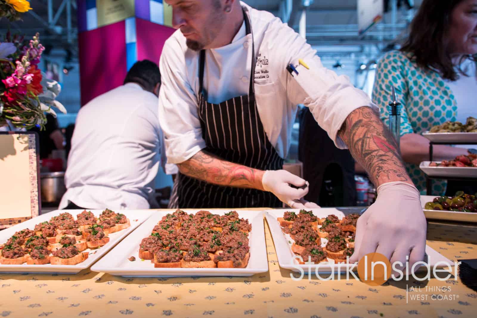 Once again the festival center at the Fort Mason Center served as the venue–it’s been held here since I first started attending in 2010. An expansive hors d’oeuvre and wine and cocktail reception kicks things off. Here, you can make your way (if you wish, loop to loop like I did!) sampling one delectable dish after another. Some of the region’s most impressive wines line the perimeter of the room. Grab a dish. Pair your wine. Savor the moment. Repeat.