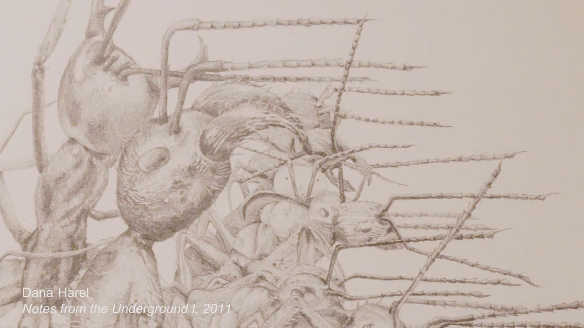 — Israeli artist Dana Harel whose paintings (Notes from the Underground I, 2011) hauntingly depict the similarities between the war strategies and behaviors of ants and humans.