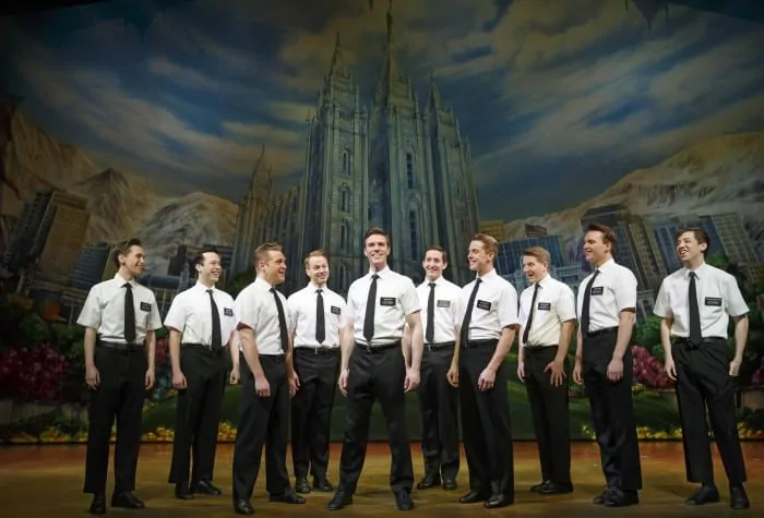 It’s hard to believe Latter Day Saints would be entirely offended by this work. After all, their indoctrination is one built around rejection, and they’ve endured decades of ridicule — door bell ringing, and slammed doors are central to several delightfully choreographed bits. Learning to overcome this rejection, and convincing someone (any one!) to read “the book” in my estimation provides a foundation of dogged determination — a highly respectable trait in this age of lackadaisical, Tweet-fueled arms-length activism. A musical that pokes fun at them? Ha, child’s play. I suspect the exposure is ultimately good for Mormonism. In fact, you’ll find a full-page ad in the Mormon program cleverly proclaiming “The book is always better”, with website, and even QR code beneath. Members of LDS (or are those cast members?) can be found mingling outside the theater, inviting us to enjoy a copy of the book. This is a religion that knows a thing or two about marketing.