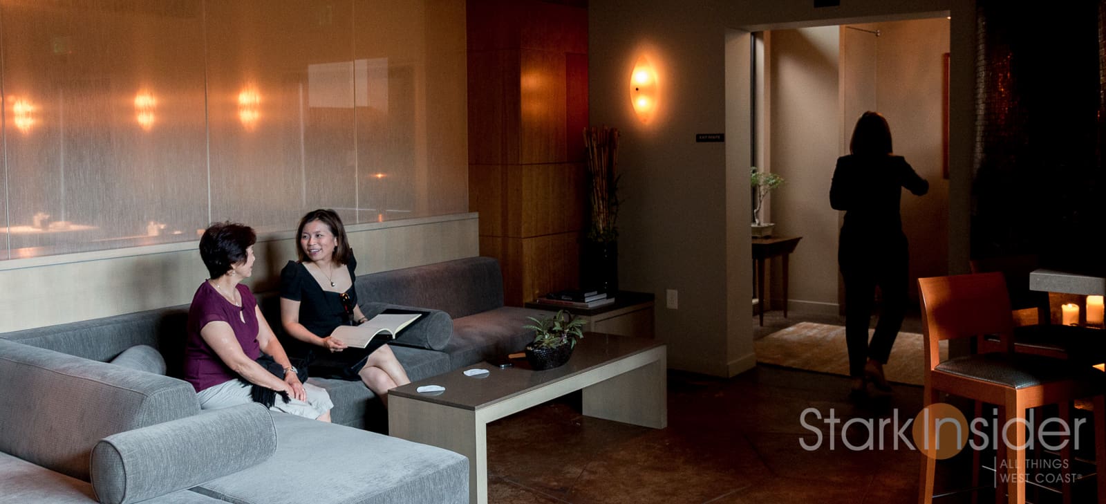 We arrive early (5:30pm). I’m glad we did. We are the first patrons on this evening, and it allows us to take in the space, and enjoy it in its quiet, elegant stillness. We spend a few minutes in the lounge. There’s a small bar, amply stacked with bottles that glow like colorful gems; in contrast to the rest of the decor which is muted and layered.