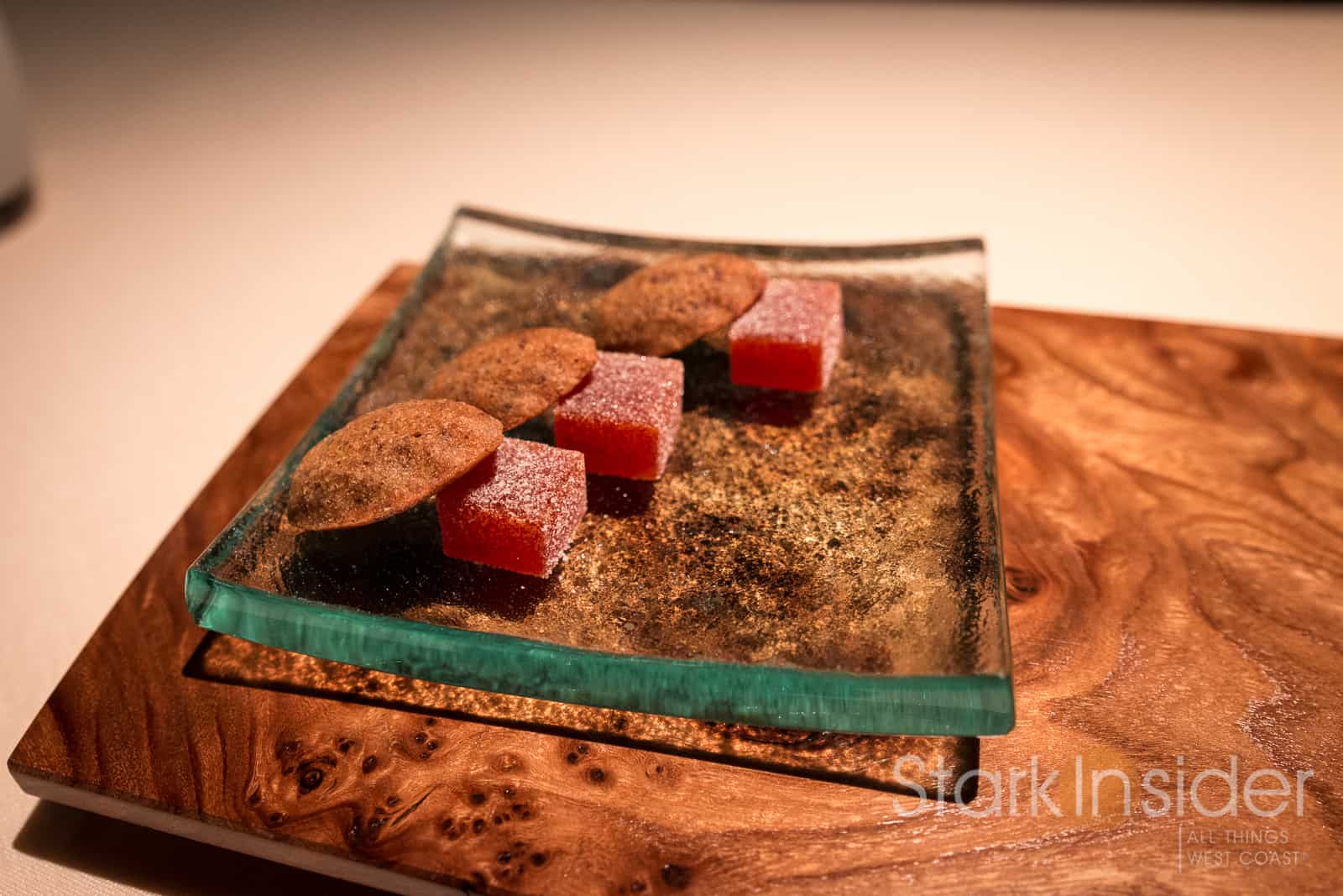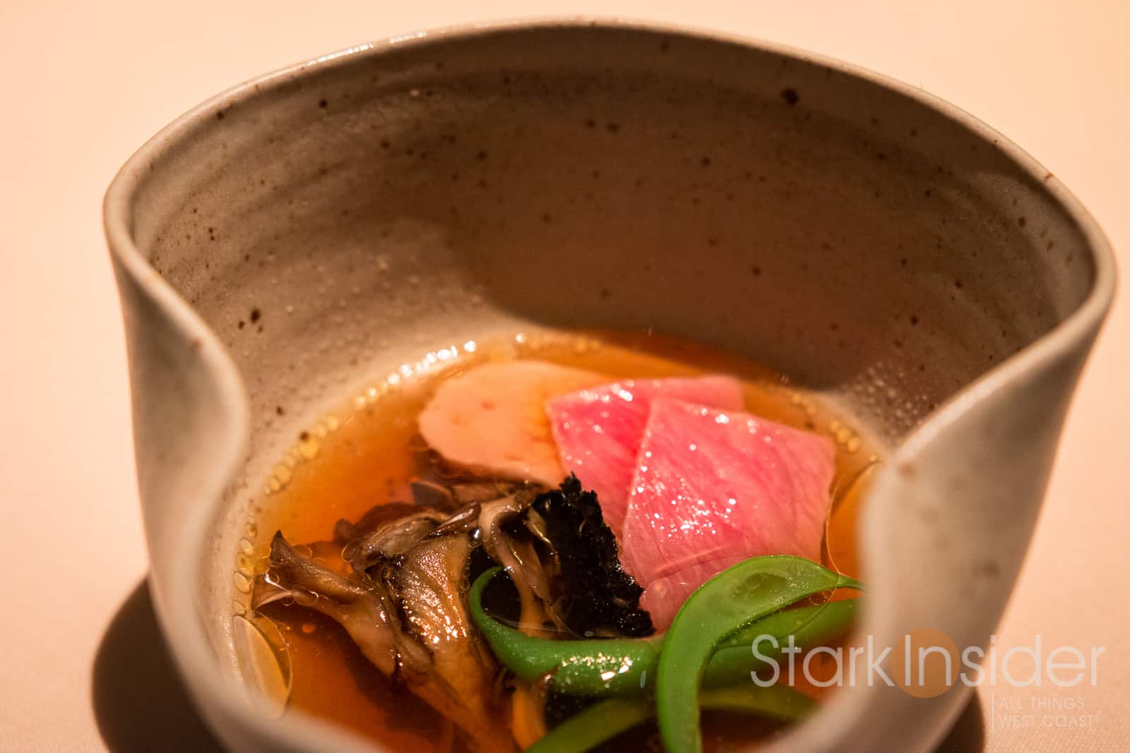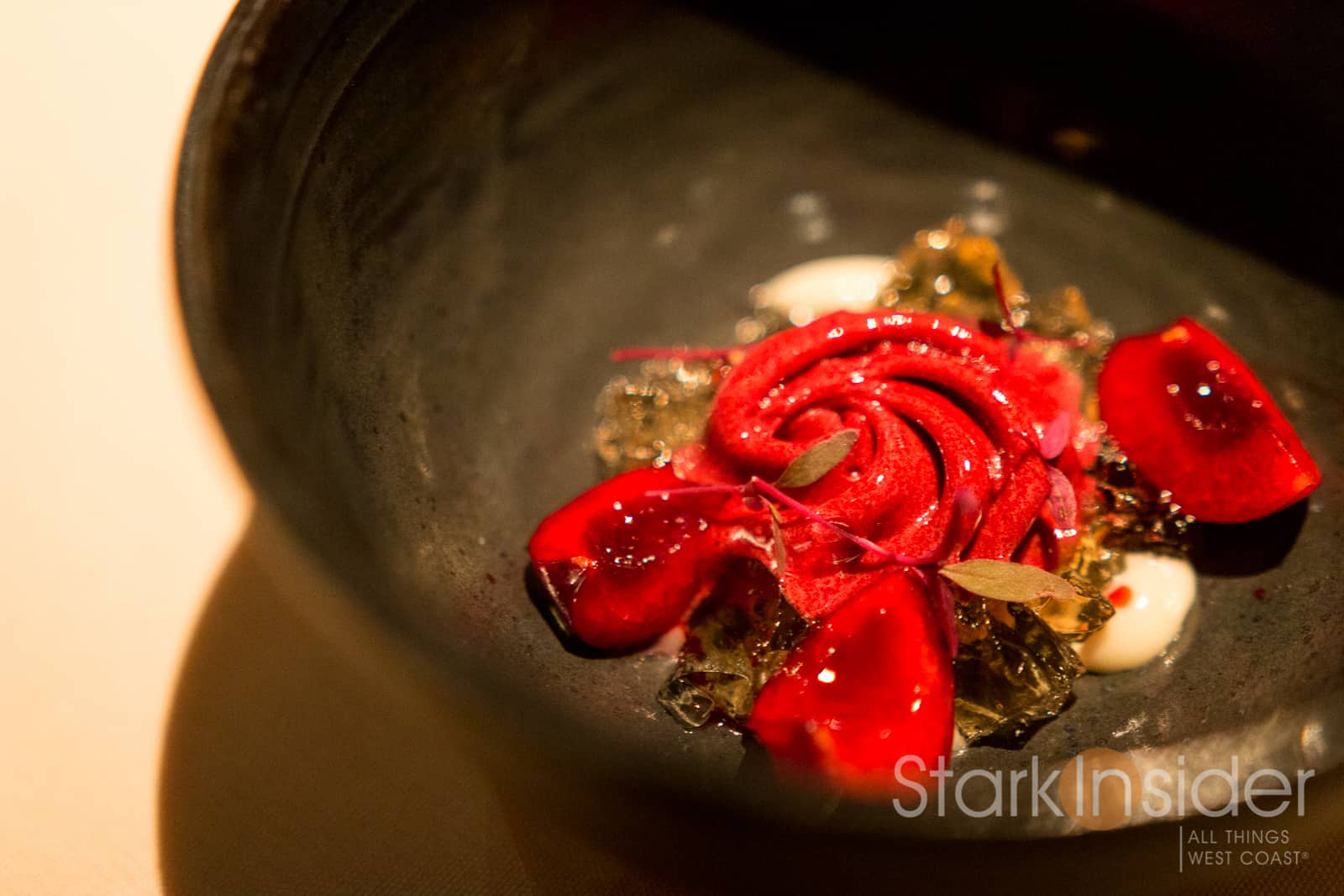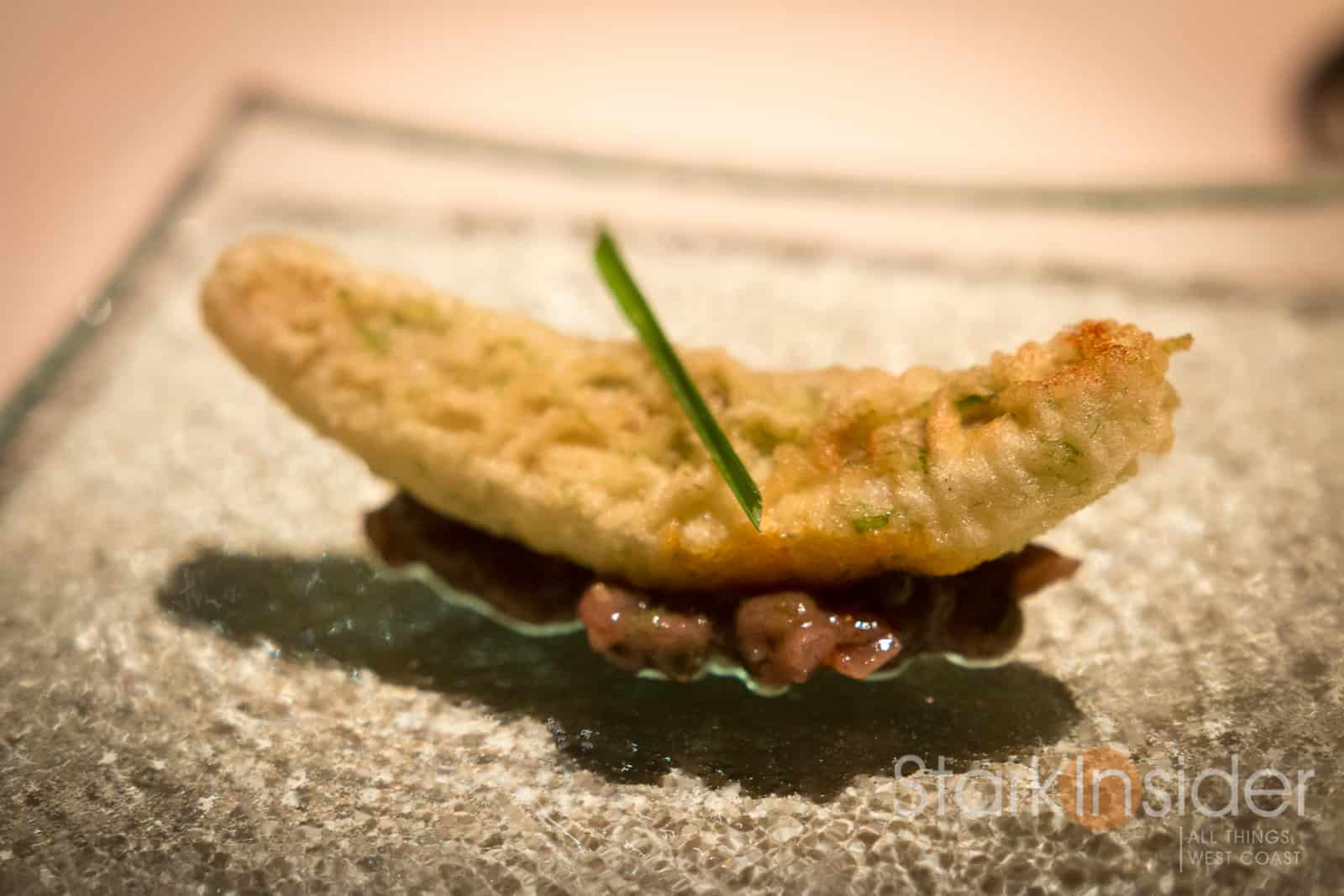 Chef David Kinch is well known for his farm-to-table approach — more about that in the new documentary featuring Kinch and Love Apple Farms. That expression is over-used these days to be sure. But Kinch is the real deal. Read up on his philosophy towards cooking, and you’ll find someone zealous about getting every ingredient just right (you can watch this Stark Insider video we shot with Chef David Kinch at the Napa Truffle Festival). I wondered if/how this approach would manifest itself in the dishes themselves.