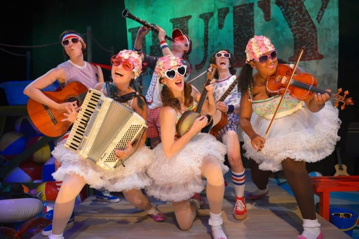 The audience enters this black box stage, with beach party in full swing. Instead of feeling staged, as such things often do, the festivities are exceptionally welcoming, signaling, yea, even unto the most grey-haired accountants, that returning the beach ball just might be a most congenial way to end a long week at work before hitting the tiki bar in the rear.