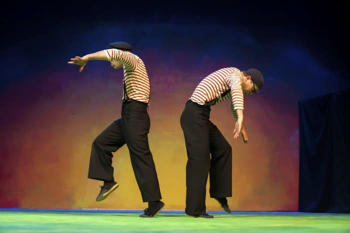 Within seconds of the lights going down, kids in the audience began to burst into irrepressible giggles at the sight of Penney and Hollander, as if all were privy to some inside joke. That shared joke didn’t leave adults standing outside, as The Submarine Show’s sight gags work on multiple levels, including one involving very un-childlike substances.