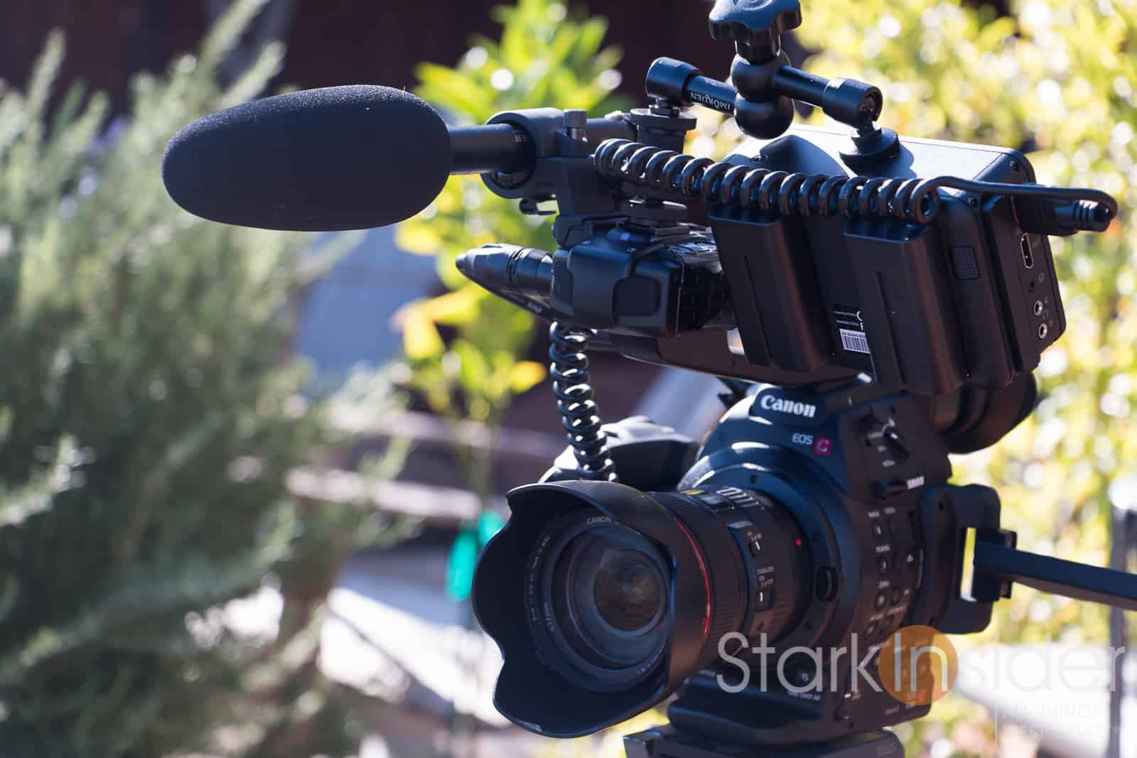 So far the C100 is a dream to operate. Audio is much improved thanks to XLR, and I no longer need to fuss about with a XLR-mini 3.5mm adapter cable as I had to with the 70D. I’ve been using the excellent Atomos Ninja Blade monitor so I can get 4:2:2 color off the Prores files — that too has been great. Only issue is the added weight and bulk. Going handheld with that set-up, including top handle, and a Canon 24-105mm lenses can work out the biceps a bit. Maybe that’s a good thing.