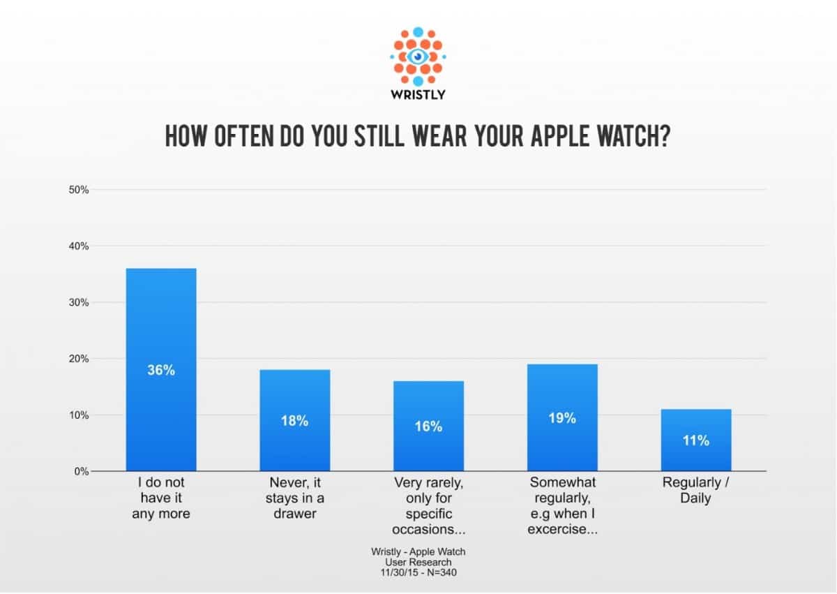 [pull_quote_center]According to one survey, over 50% of Apple Watch owners report they either don’t own it anymore (36%) or leave it in a drawer (18%).[/pull_quote_center]