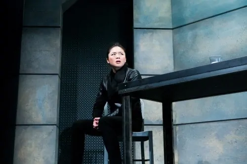 Ruibo Qian gives a fierce performance as Morris, a detective investigating activities in the Nether. She questions Sims, (Warren David Keith), creator of a sector of the Nether, whose opaque answers alternate with indignant protestations that his behavior was protected by law.