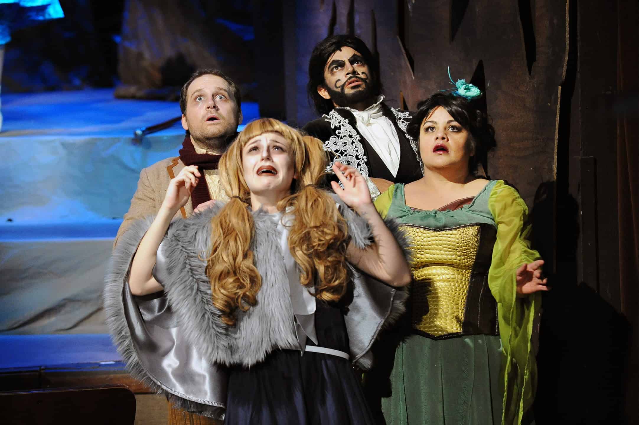 Into the Woods is a difficult show to perform, demanding split-second responses, with nary a rest. Fairytale characters busily weave their assorted tales, while simultaneously operating on a whole different level to subtly remind us that these archetypes live in our heads, inhabiting some deep part of ourselves. These stories live us as much as we live them. Good productions of this play operate on the same level as the opening of Dante’s Inferno, in which that narrator finds himself “within a forest dark, for the straightforward pathway had been lost.”