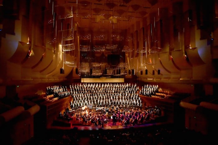 But that might be too tortured a descriptor. Artistic Director Dr. Timothy Seelig and the 300+ SFGMC had the Davies Symphony Hall audience enraptured with a program that offered up everything from “Friday Night in the Castro,” complete with rotating disco ball that sent lights dancing across the entirety of the spacious hall, to a sweetly evanescent “Sunday,” from Sondheim’s Sunday in the Park with George.