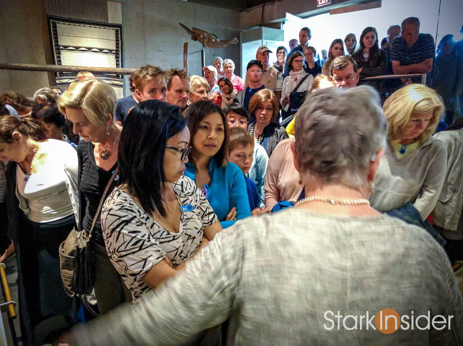 On the first tour, our guide made sure to spend ample time on the center piece of the museum. Bill Reid’s iconic sculpture “The Raven and the First Men” took two years to complete and was dedicated in 1980. Made of gorgeous yellow cedar, the piece was even depicted on the Canadian $20 bill from 2004-2012. Per the Bill Reid foundation, “In Haida culture, the Raven is the most powerful of mythical creatures. His appetites include lust, curiosity, and an irrepressible desire to interfere and change things, and to play tricks on the world and its creatures.” An interesting creature to be sure — and Bill Reid’s work captures its essence magically. To see this in person is to truly feel moved.
