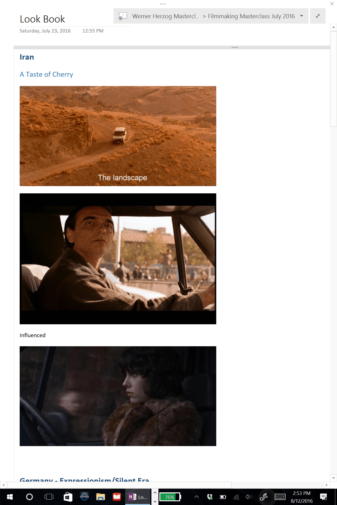 Finally, and perhaps most importantly, this course inspires. On many levels. It’s taught by a craftsman with some 70-odd films under his belt. Not only that. Werner is now in his 70’s; you’d never know it. He’s going as strong as ever. How can you not be inspired from someone like that?