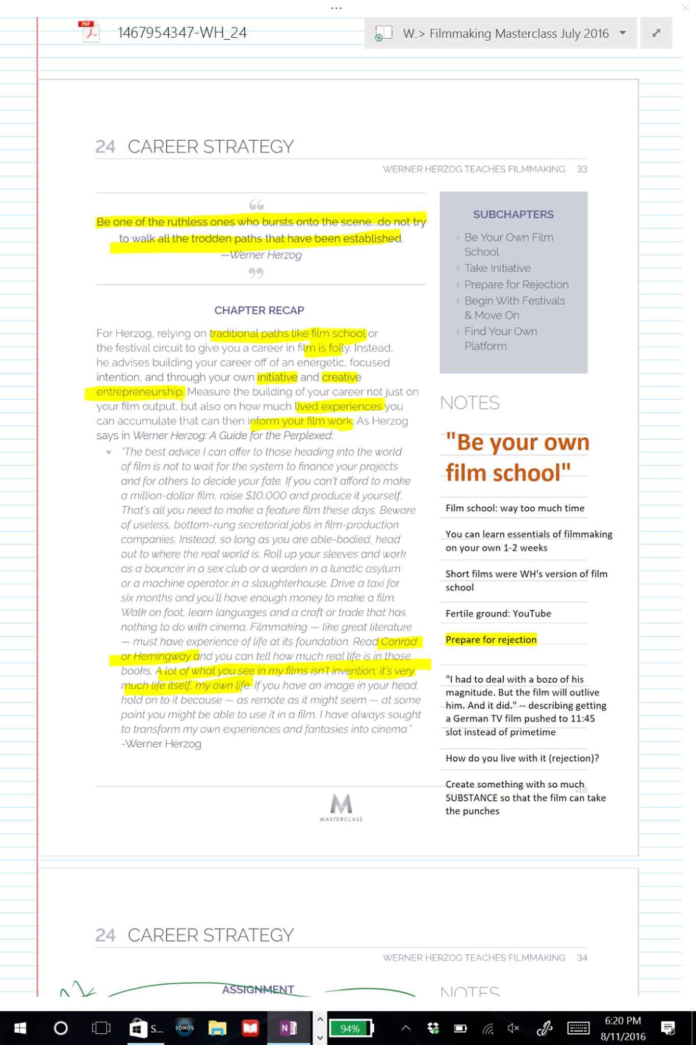 - Serious assignments with heft. Reading and writing key elements of the course. Comprehensive. Marvelous production value. Highly entertaining and engaging video content. Klaus Kinski and Nicolas Cage stories are killer. Werner Herzog providing color commentary on iconic films including many of his own? Yes!
