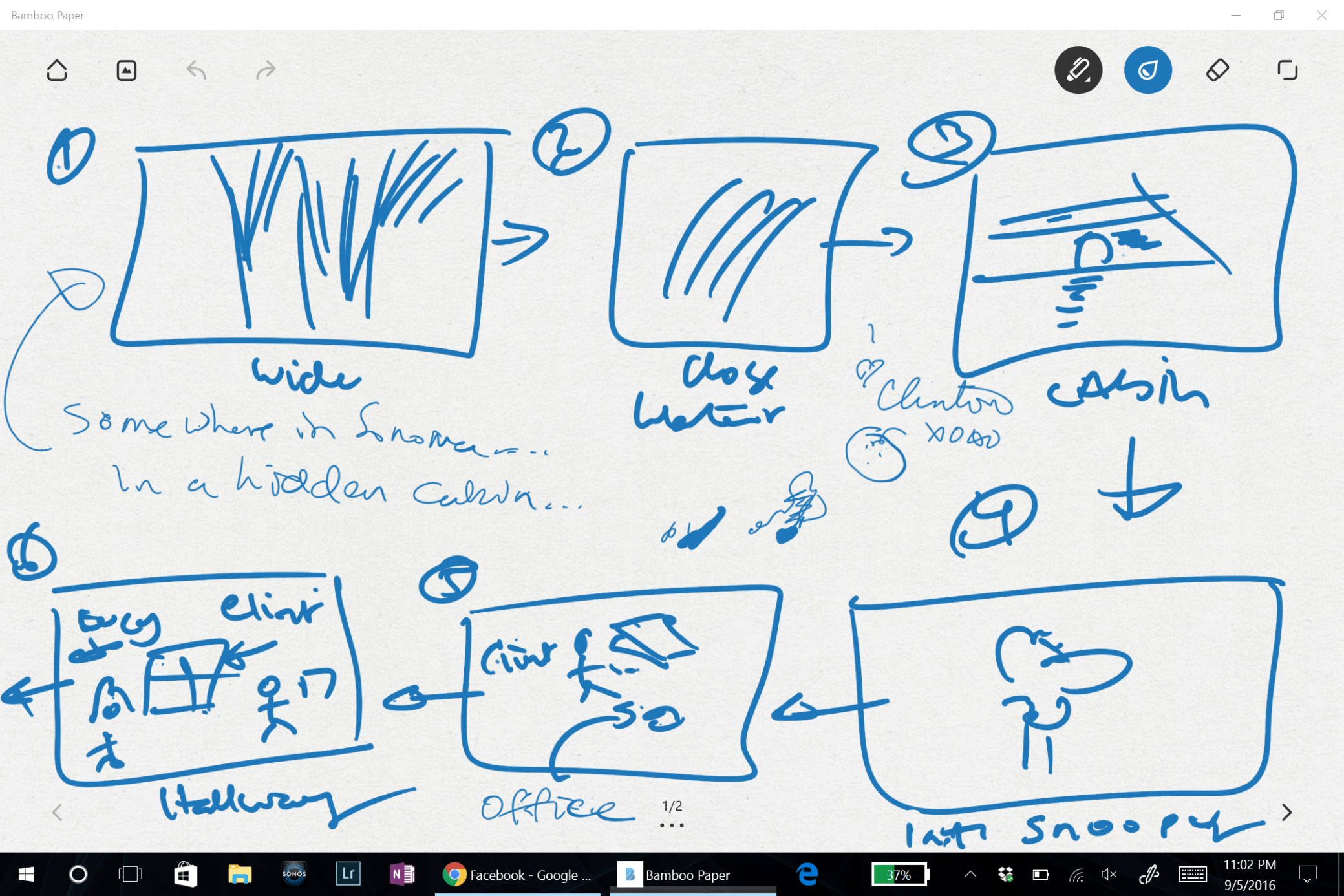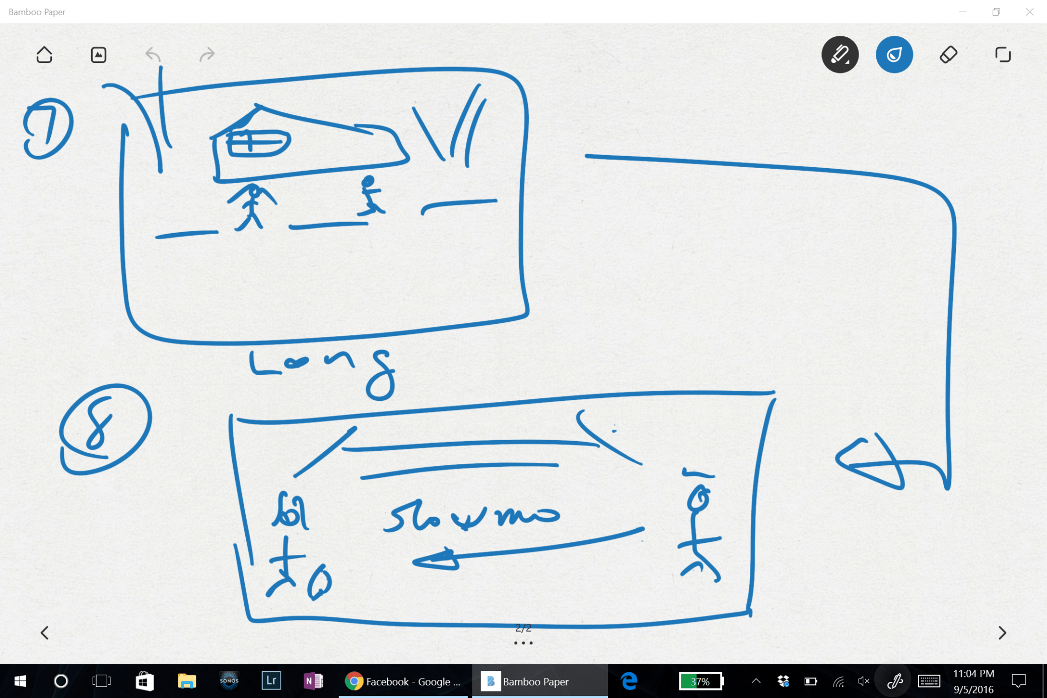So even though it was the Labor Day long weekend, sitting in traffic took away about 12 hours right off the bat. Then there was the prop (thanks to Walmart for a $5 football). A storyboard (I drew it up crudely, see below). A script (Loni whipped it off in 5 min). The shoot itself (we scrambled to maximize shooting time during the Golden Hour). And, finally, editing/post-production (about 15 hours).