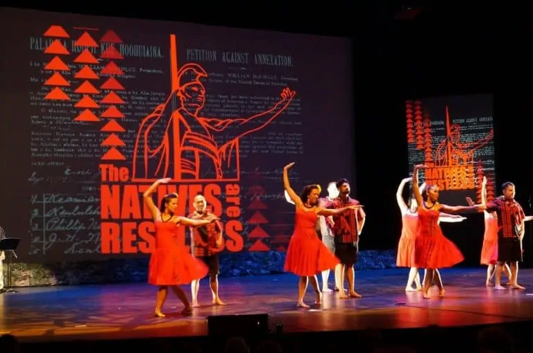 His recent stage production, entitled The Natives Are Restless, showcases the latest developments in hula dance and Hawai’ian political activism. It also highlights publication of a new coffee-table book which tells the story of Makuakāne and Nā Lei Hulu I Ka Wēkiu , one of the largest hula schools in the world.