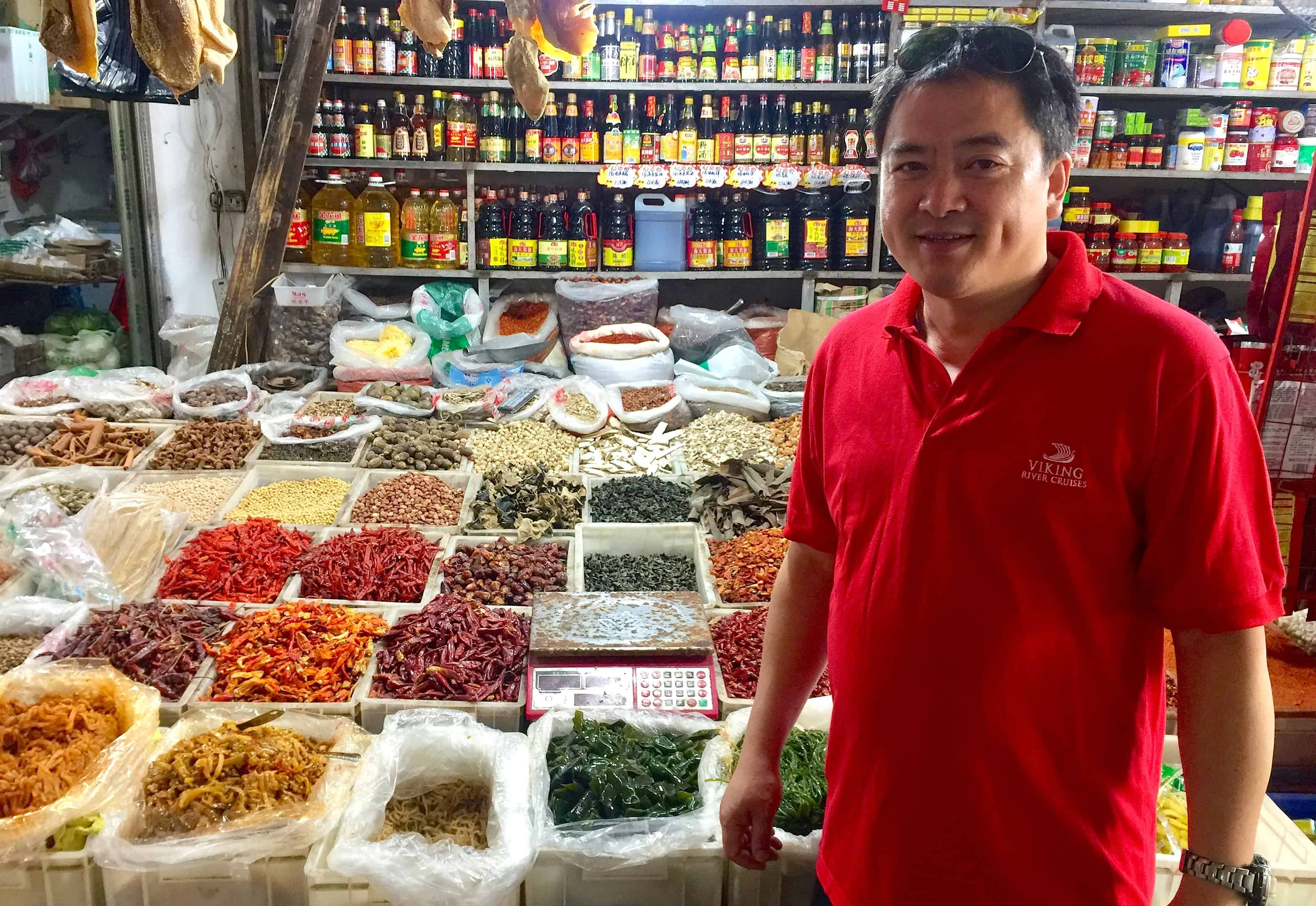 Since the food on board was some of the best I’ve ever enjoyed on a Viking cruise (not surprisingly, there were outstanding Chinese dishes offered at each meal) I jumped at the chance to join the talented Chef Danny Tang on a morning market tour, where we sampled soup dumplings, fresh lotus seeds and shopped for fresh veggies and spices.