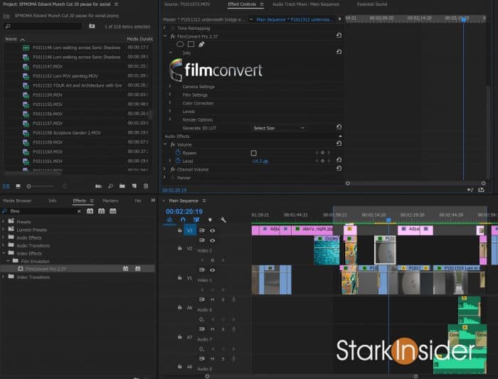 - Apply the FilmConvert effect (from the Effects panel if you’re using Premiere) to your video clips or adjustment layers