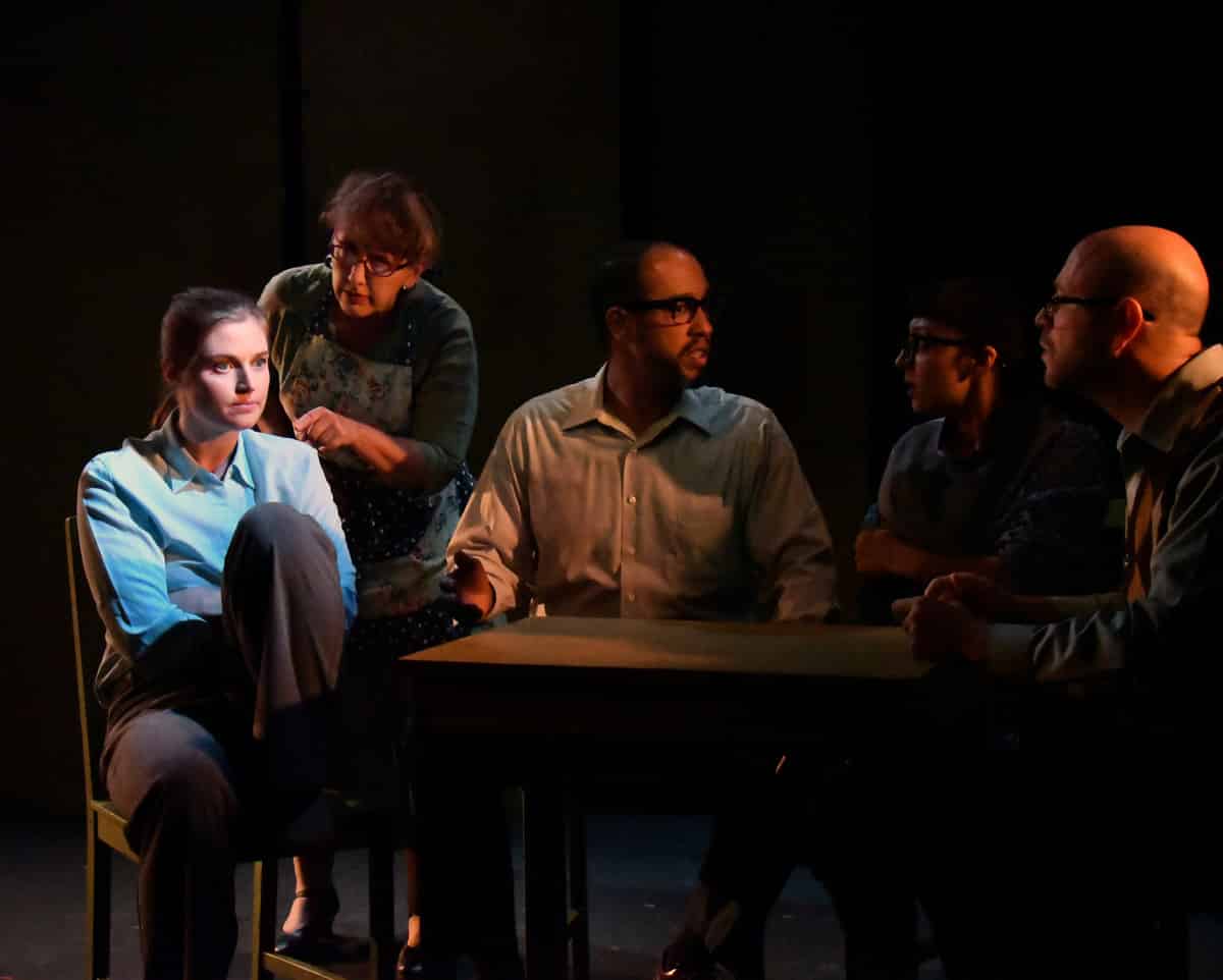 Who knew a show about incest and pedophilia could be so funny? How I Learned to Drive gives its subject due weight, but it doesn’t shy away from humor. Li’l Bit introduces her topic by harkening back to a time before she knew that “pedophilia did not mean people who loved to bicycle.” We learn right away that her family assigns nicknames based on genitalia. The monologues about drinking like a lady—delivered with the confidence of experience by Valerie Fachman—are hilarious highlights. Grandmother’s oversized personality and outspoken opinions about her husband (and men in general) provoke chuckles, especially coming from the young and spirited Gianna Digregorio Rivera. The Greek Chorus gives the play a bouncy 60s soundtrack (sung in excellent harmony), at one point stopping mid-fight to tune up a barbershop-style trio.