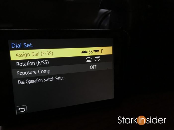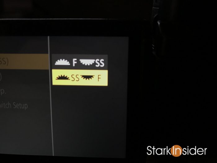 It’s easy to do on the GH5. To swap the aperture and shutter angle/speed dials do this: