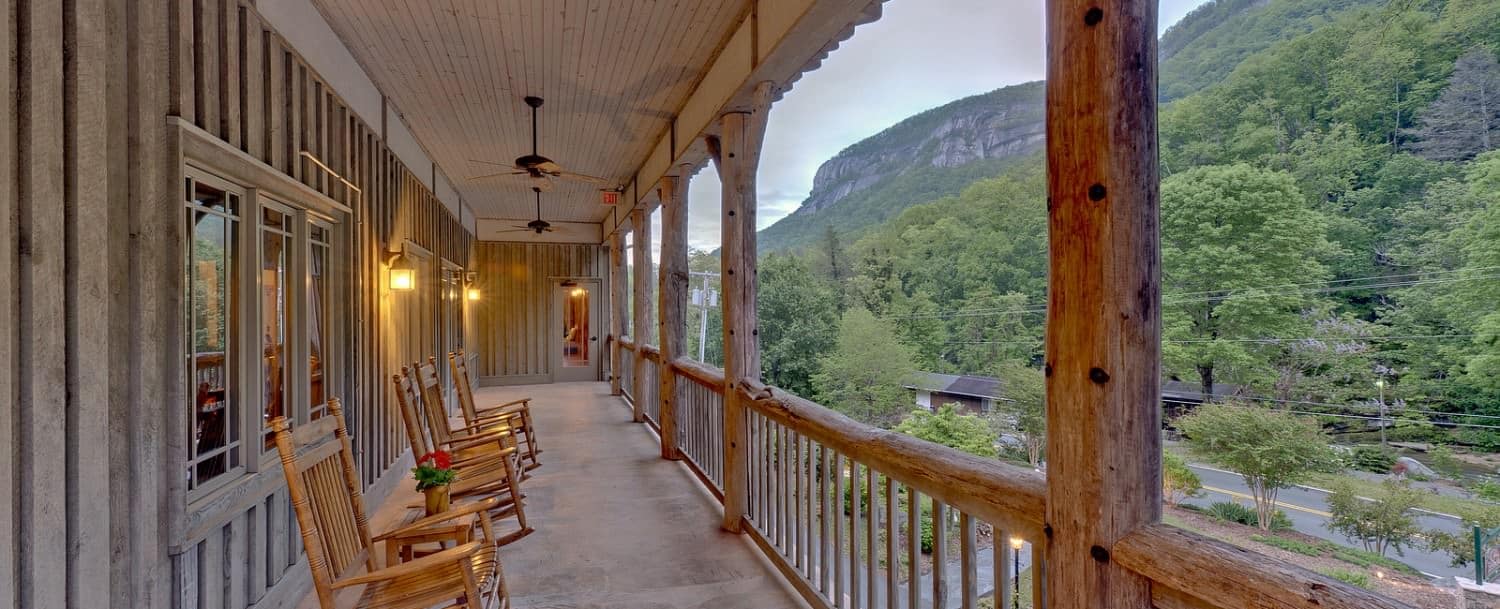 Nab a rocking chair and Order a glass of wine from their well-curated list as you take in the views of Chimney Rock from a rocking chair on the porch or while soaking in the outdoor Jacuzzi.