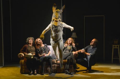 Director Tony Taccone’s straightforward, unobtrusive staging highlights the contradictions of Handler’s script. Just as rabbits are, according to Handler, “funny but spooky… adorable but creepy,” his rabbit-driven play is realistic but absurd, nonlinear but logic, farcical but earnest. There are no ambiguities on one point, though: it’s loads of fun.