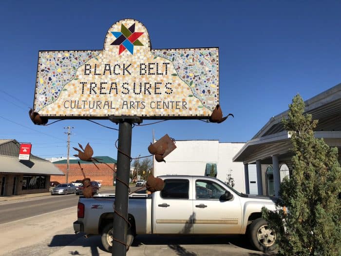 Inside tip: If you haven’t spent all your money on quilts there is an excellent selection of local food, music, arts and crafts at the non-profit, Black Belt Treasures Cultural Arts Center in nearby Camden. I brought home a “Do Rag Woman” created by Charlie “Tin Man” Lucas, one of Alabama’s top folk artist known for his unique style of working with recycled objects and repurposed tin.