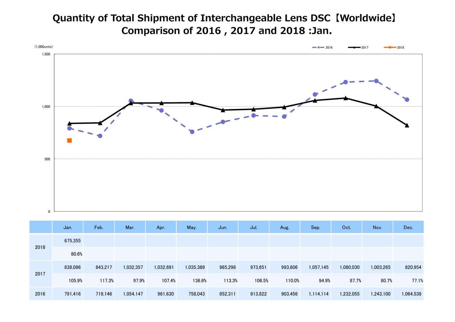A report out of Japan suggests sales for the digital still camera (DSC) segment fell 28% y/y. CIPA’s data show that total shipments for January 2018 were just 1,340,492 units vs. 1,867,875 units for the same period prior. Note that this includes worldwide shipments and cameras both with and without built-in lenses.
