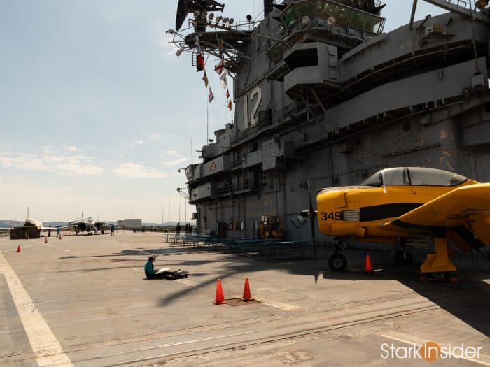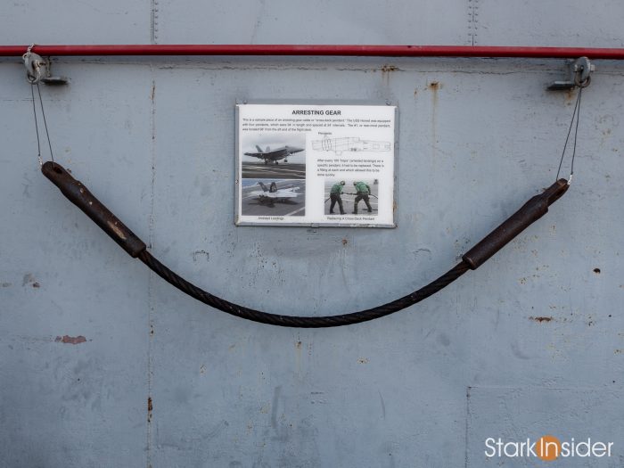 There’s plenty to see. As you might expect there’s vintage planes and helicopters in the three hangar bays. And it’s truly impressive to study the massive freight elevator that’s used to transport them up to the flight deck.