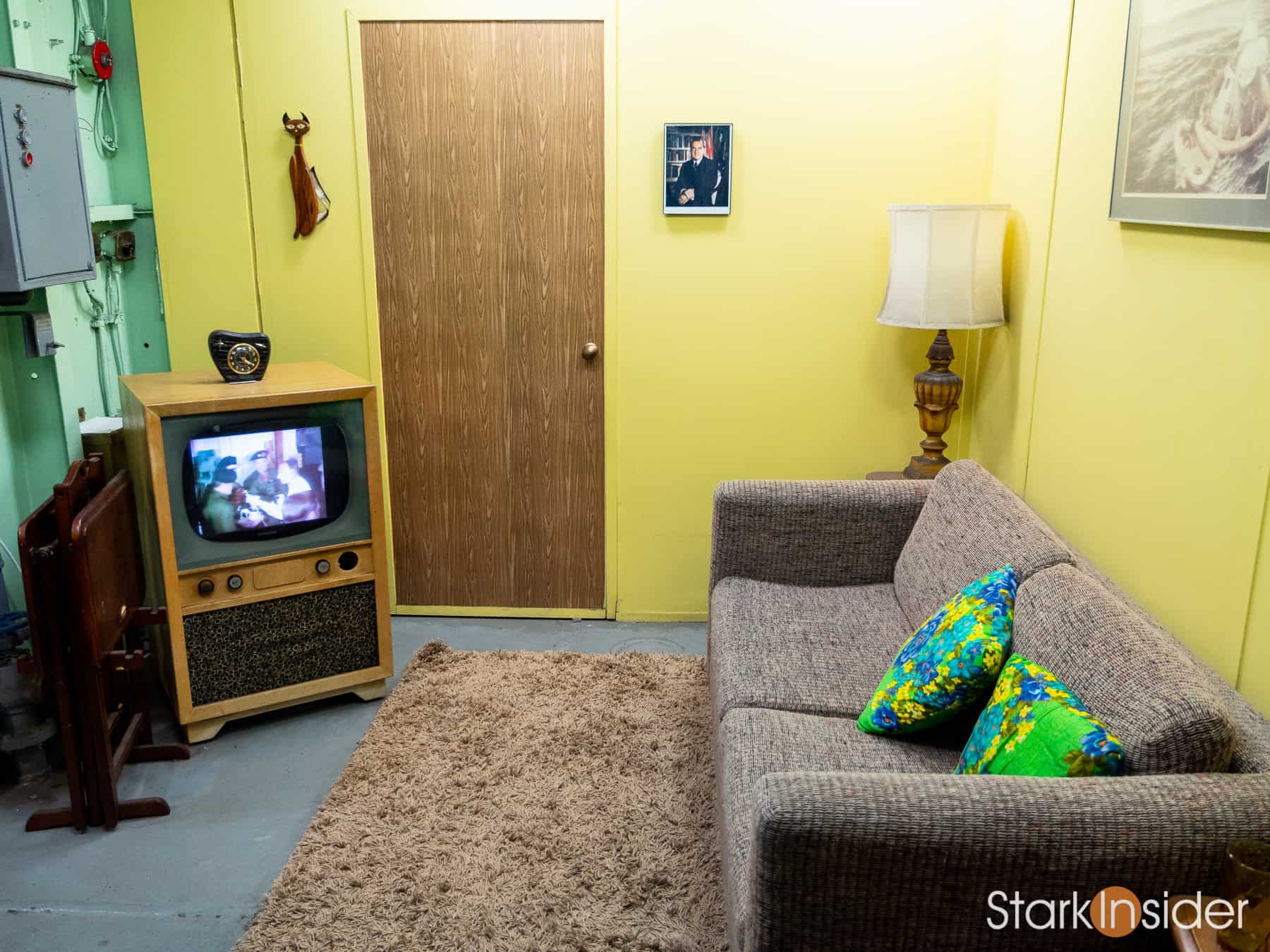 In a small space on the second level (Hangar Deck), a 1960s living room has been faithfully recreated. Shag carpet. Cool old television in a wooden stand. Gnarly sofa. All coated in various shades of yellow and green, so reminiscent of the time period. Playing on the TV, of course, are clips of the Apollo recovery missions, and interviews with the crew. If you weren’t old enough to experience these historic moments in the country’s space program, well, here’s your chance. Continue beyond the living room, and you’ll find a classy re-telling, in photos and words, of both missions in the Apollo Splashdown Exhibit — the USS Hornet was recovered the Apollo 11 space capsule in 1969, and few months later Apollo 12 and its crew.