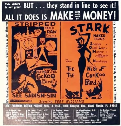 Perhaps the best part, though, of Nest of the Cuckoo Birds is the marketing materials. By today’s standards you’d think this thing was a pure act of depravity: