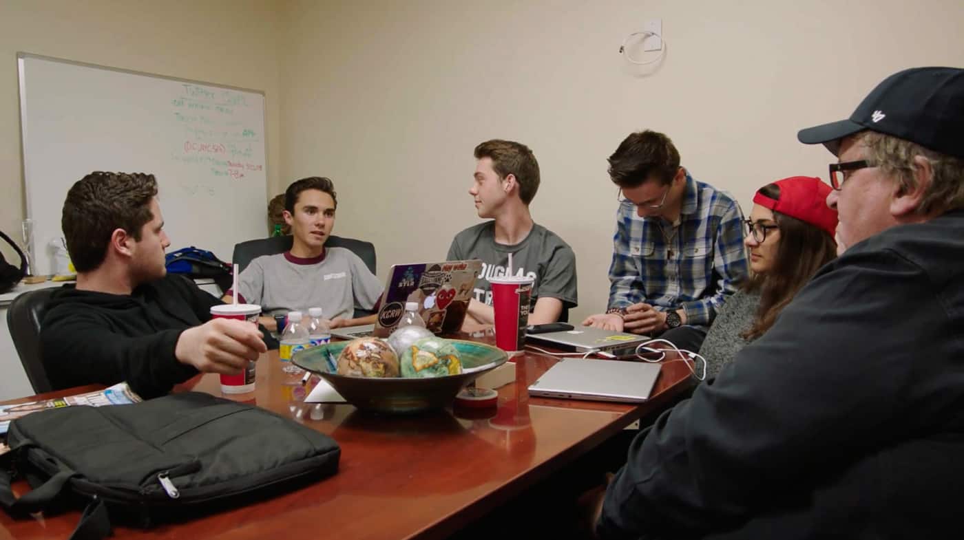 As examples of participatory democracy and democratic socialism, Moore includes powerful footage of strikes by underpaid public school teachers across the nation, and the touching courage of activist teens whose high school campuses were shot up by men with assault rifles.