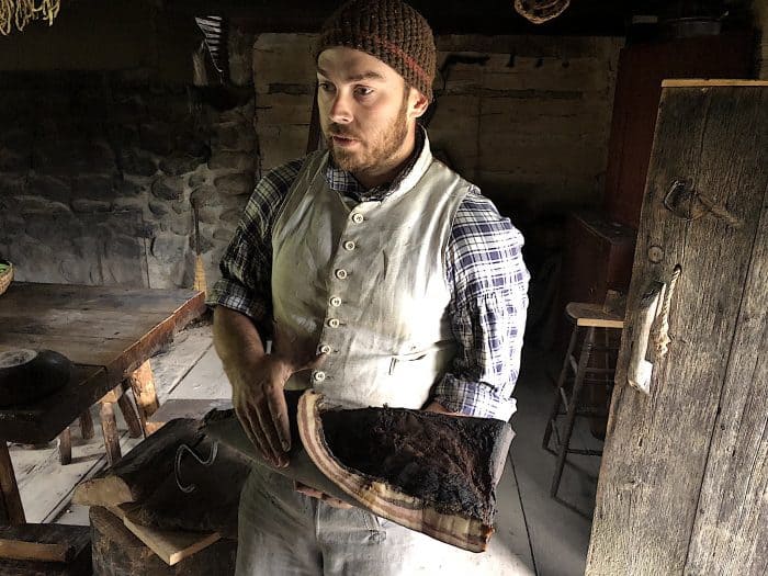 I was completely mesmerized by Matt, who works with the farm animals, as well as doing some carpentry, tool making, and has mastered about 50 other early American life skills. When I asked, in awe, if he could survive in the wilderness, he replied, “Absolutely, as could my wife and daughters (whom they home school). For her birthday, my daughter (I think he said she was about 8 yrs old) asked for a baby anvil so she could do blacksmithing with me.”
