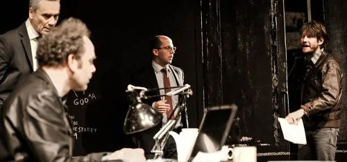 Although true to Ibsen’s plot, Florian Borchmeyer’s version of the script and Ostermeier’s staging introduced a quirky sense of modernity, with frantic juggling of phones and a personified radio set. A beatboxing showdown was the play’s comedic highlight, but an ape impersonation, gratuitous chair-reshuffling, and weed jokes all got plenty of laughs as well. Hovstad, Billing, and the Stockmanns played in a band together, providing energetic music between and during scenes.