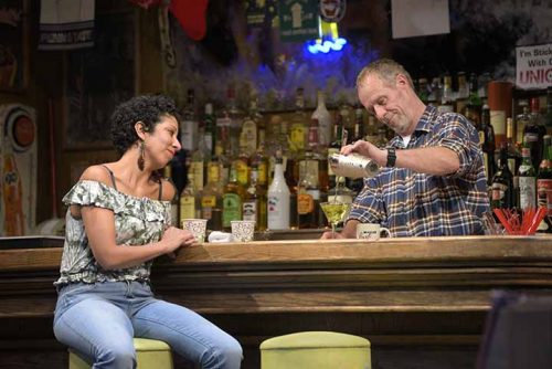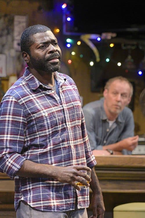 That hurts, because the audience is rooting for those friendships. Tracey brings energy and fire to every interaction. Her friend Cynthia (Tonye Patano) wins us over with her no-nonsense attitude and gentle longing for the people she has lost. The drunken Jessie (Sarah Nina Hayon) tries too obviously to keep her balance and her head. Tracey’s son Jason (David Darrow) is a fun-loving teenager who just wants his job, friends, and motorbike to remain unchanged, while Cynthia’s son Chris (Kadeem Ali Harris) reveals soft-spoken thoughtfulness and college ambitions. The bartender Stan (Rod Gnapp) wants to see every side of the situation and make everyone understand each other – which makes the growing rifts between people particularly hard for him.