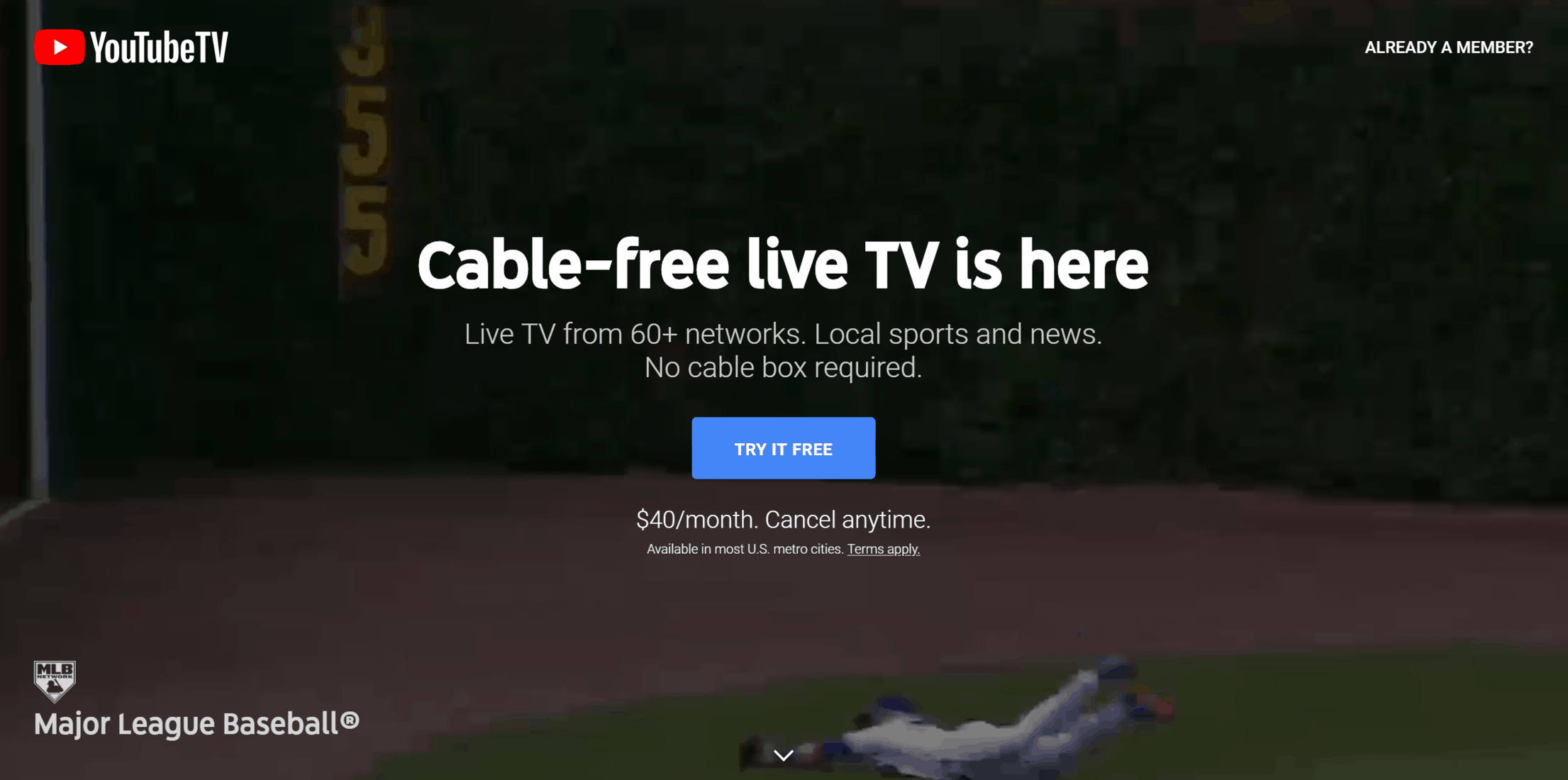 In total, Google says that YouTube TV offers live TV from over 60 networks today, including live sports and local news. Unlike days gone by, there are no contracts. You pay $40 per month, and can cancel anytime (similar to what lower-cost Sling TV offers).