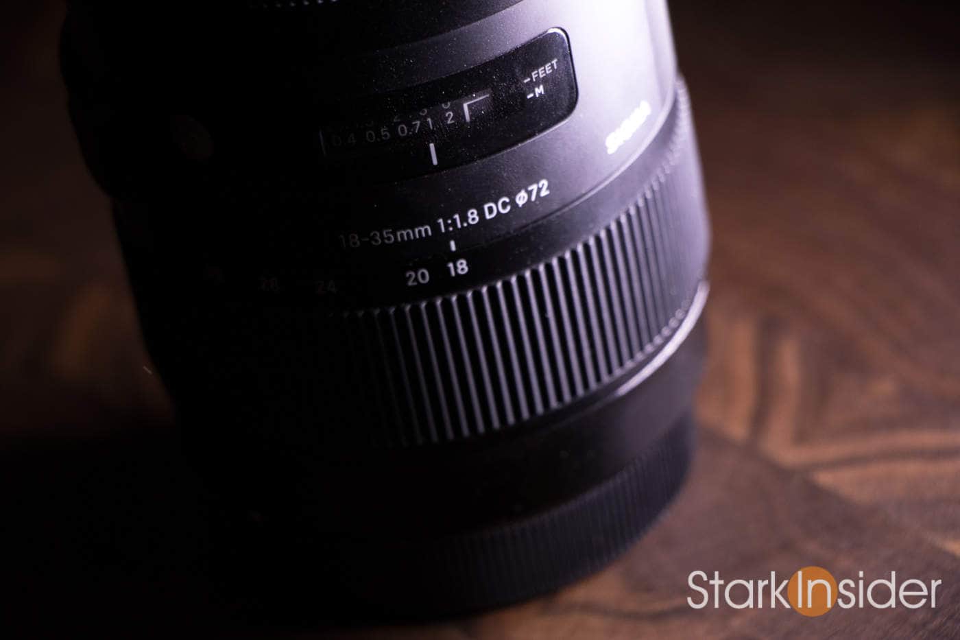 One more quick thing to know about the sigma 18-35mm. Sigma denotes it as “DC” which is simply their terminology for APS-C, meaning this lens will cover cameras that have an APS-C size sensor. That also means you will get vignetting if you try to use this (and other DC lenses by Sigma) on a larger sensor, such those found on a full frame camera (Canon 5D, Canon EOS R/RP, Sony a7 and Nikon Z6/Z7 for instance).