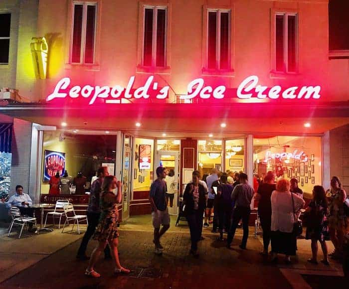 Even if you’ve had dessert, head over to Leopold’s Ice Cream for a mandated follow-up. Three brothers from Greece founded this Savannah institution in 1919 and, as you can see from their perpetual, snaking-out-the-door line, it’s still going strong 100 years later! Warning: it’s hard to choose between their inventive Tutti Frutti ice cream, stuffed with candied fruit and rum-soaked Georgia Pecans, the classic Lemon Custard, which has been a constant since they opened, and one of their seasonal flavors such as Habanero Sugar or Japanese Cherry Blossom, so best to go with a friend who shares.