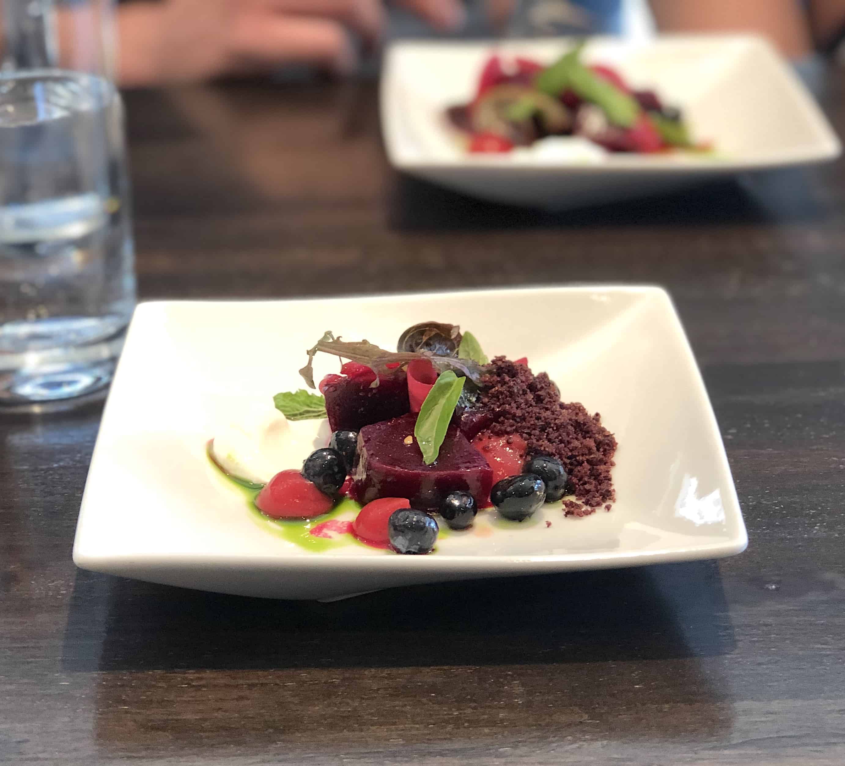 EVO Kitchen + Bar turned me from an affirmed beet-hater to a total addict with the most killer beet presentation. It was a still-life beauty composed of both slow-roasted and pickled beets embellished with lemon yogurt and dried olive crumbles.