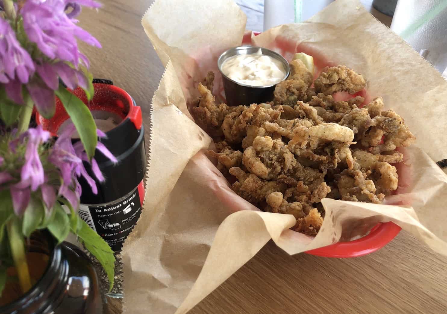 Replace the chips with the Lighthouse Salad made from local greens topped with a flavorful kelp buttermilk dressing. Then use the calories you saved for the Fried Whole Clam Bellies enveloped in a barely-there rice-flour coating.