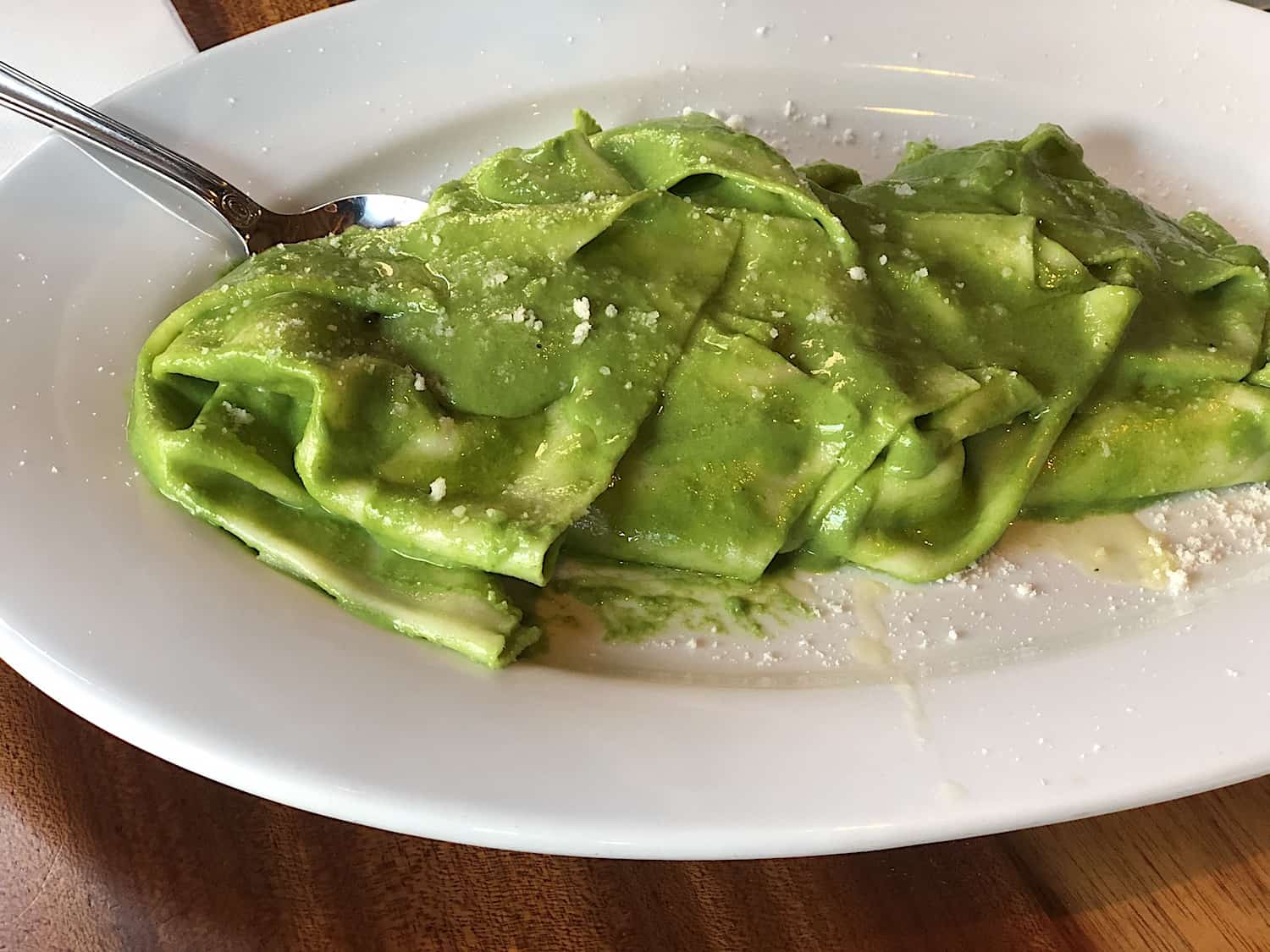Sheer pasta perfection awaits you at Solo Italiano, when you bite into the Mandilli al Vero Pesto Genovese, which translates to “silk hankies in pesto.” Chef/owner Paolo Laboa, won the World Pesto Championship in Genoa with this complex, seven-ingredient basil pesto. We learned that he tweaked the recipe for 30 years before his mother finally gave it her blessing.