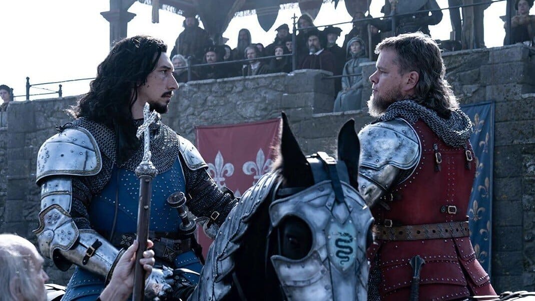 The crime is rape. Marguerite de Carrouges (Jodie Comer) tells her husband that his friend and colleague Jacques Le Gris (Adam Driver) assaulted her. Jean de Carrouges (Matt Damon) demands satisfaction as a point of honor and petitions their feudal overlord, Count Pierre d’Alencon (Ben Affleck), to permit Jean to challenge Jacques to a duel.