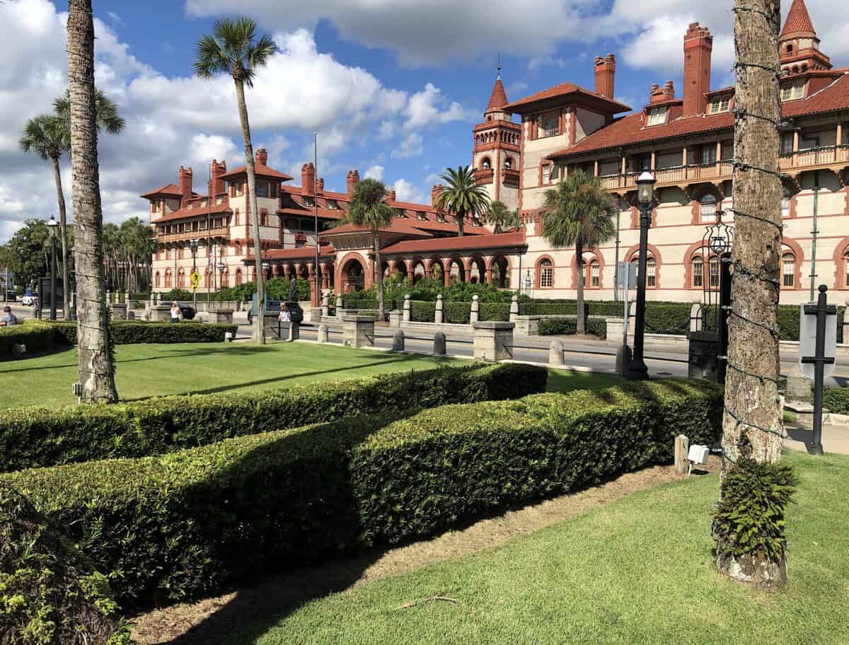 The exterior of this luxury property, with its grand Victorian architecture and wraparound veranda, pays tribute to the historic San Marco Hotel, which stood here during the Gilded Age.