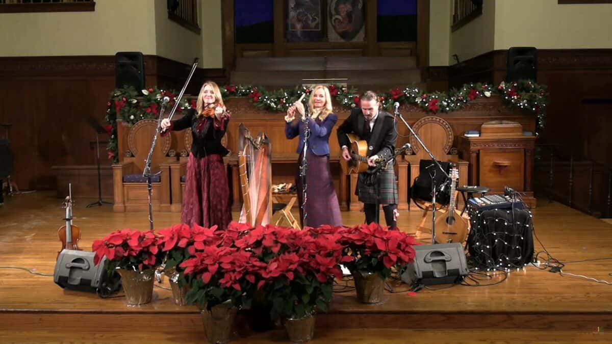 Margie Butler, Kathy Sierra and Paul Espinoza play and sing together as family, bringing incredible warmth and gaiety to a bare stage in Old First Presbyterian Church in December of every year.