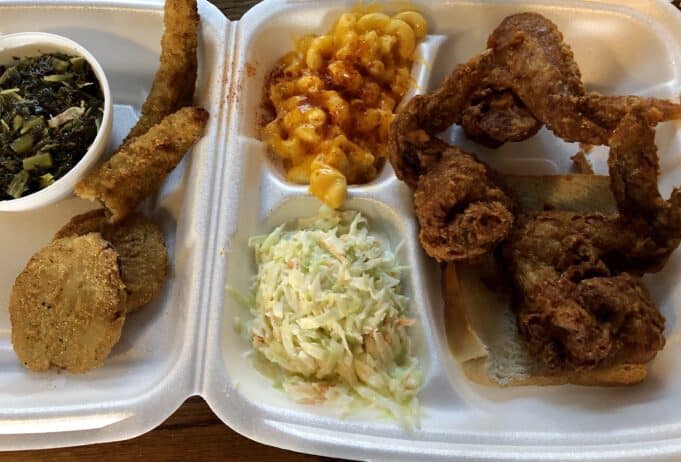 If you’re jonesing for your daily Q, try BB’s Famous Lip smacking, fall-off-the-bone pork ribs, with a side of fried dill pickles doused with horseradish sauce.