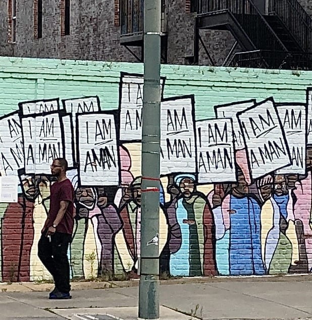 Around town you’ll see many references to I AM A MAN, which you might be wondering about. This refers to the sign that was worn by many of the striking sanitation workers and the fact that many of those same issues remain unresolved.