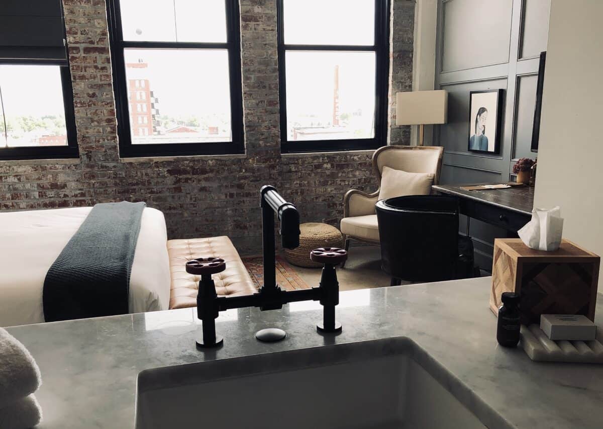 The industrial-chic, concrete and exposed brick rooms are fun, bright, huge, and quirky, yet still manage to be incredibly comfy. Lots of natural light, a styling marble bathroom, vintage wallpaper, Grown Alchemist bath amenities, an Apple TVs and the world’s coziest bed will make it hard to leave your room.