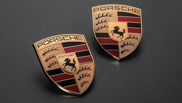 Visual History of the Porsche Crest Comparison: 1954, 1963, 1973, 1994, 2008, 2023