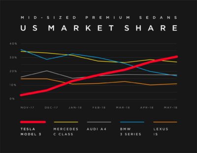 Trendspotting: Tesla Model 3 out-selling Mercedes, Audi, BMW, Lexus in mid-sized premium auto segment